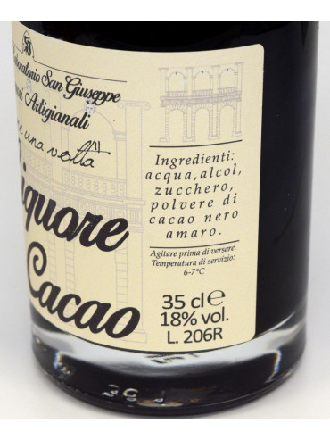 Il Liquore al Cacao nasce da un’infusione di polvere di cacao nero amaro purissimo. Presenta un gusto speciale di cacao, dolce, pieno e persistente, in cui gli ingredienti sono finemente equilibrati.