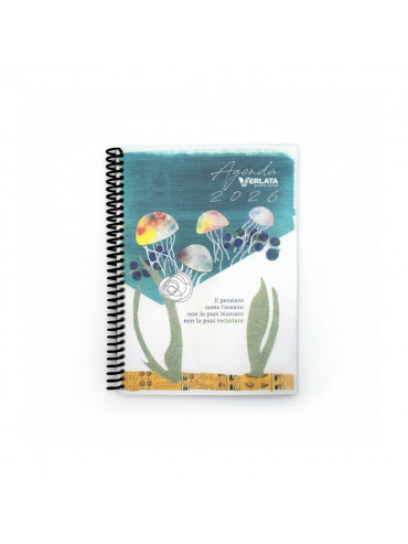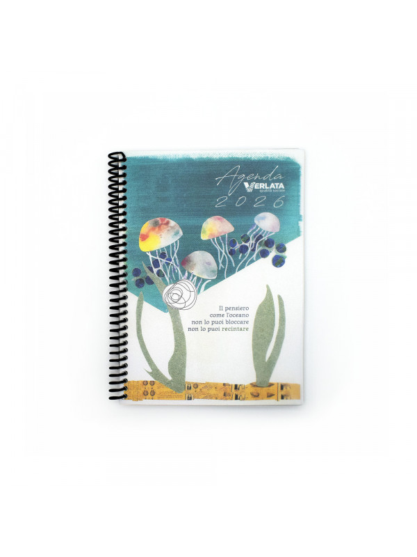 Agenda settimanale 2026 con rilegatura a spirale e pagine in carta riciclata.