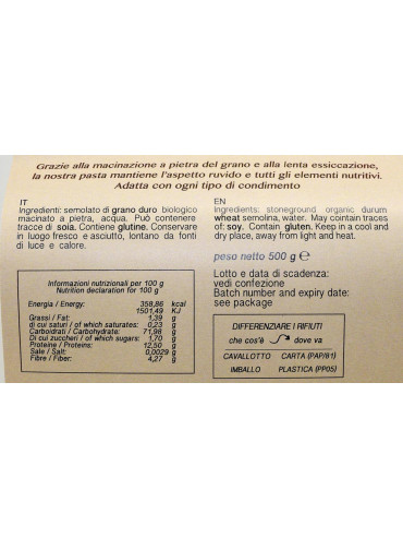 Penne trafilate al bronzo, di grano duro biologico semintegrale macinato a pietra. La lavorazione artigianale e la trafilatura ruvida esaltano ogni sugo, regalando una pasta dal gusto intenso, profumata e ricca di fibre. Ideale per chi cerca qualità, tradizione e benessere a tavola.