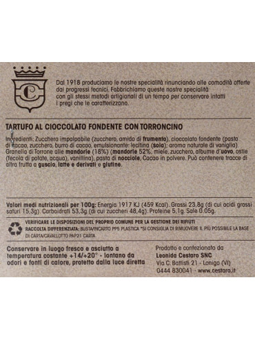 Squisiti tartufi al torroncino ricoperti di cioccolato fondente.