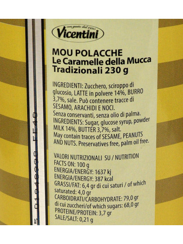 Le classiche Mou Polacche fatte con burro, zucchero e latte: ingredienti semplici e genuini lavorati secondo la tradizionale ricetta delle fudge per creare una caramella morbida e friabile, dolce e gustosa che rallegra i bambini e ricarica gli adulti!
